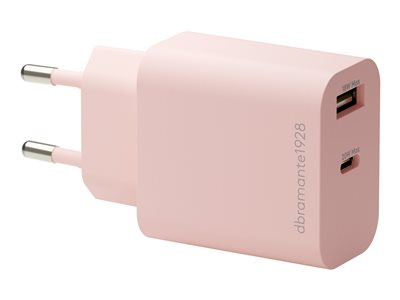 dbramante1928 re-charge - Síťový adaptér - 20 Watt - 2 výstupní konektory (24 pin USB-C, USB) - růžová - Evropa