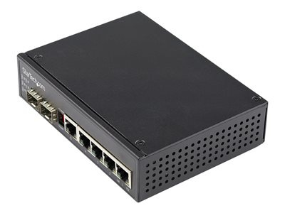 StarTech.com Industrial 6 Port Gigabit Ethernet Switch 4 PoE RJ45 +2 SFP Slots 30W PoE+ 48VDC 10/100/1000 Power Over Ethernet LAN Switch -40C to 75C, DIN Connector/Mountable, Fast Ethernet - High Power PoE Switch (IES1G52UPDIN) - Prepínac - 1 x 10/100/1000 + 4 x 10/100/1000 (PoE+) + 2 x SFP - lze montovat na konzolu DIN - PoE+ (120 W) - DC napájení