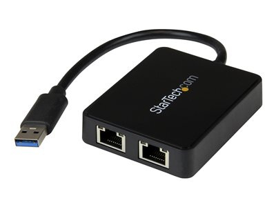StarTech.com USB 3.0 to Dual Port Gigabit Ethernet Adapter w/ USB Port - 10/100/100 - USB Gigabit LAN Network NIC Adapter (USB32000SPT) - Síťový adaptér - USB 3.0 - 1GbE - 1000Base-T - 2 porty - černá
